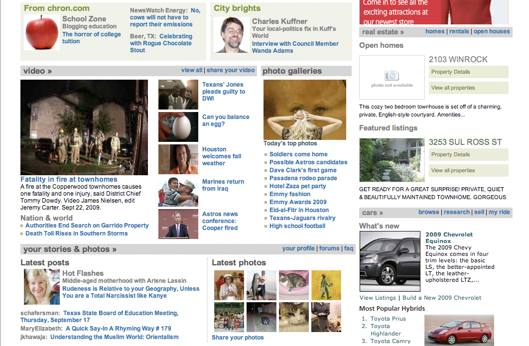 All in all, the Chronicle’s Web site does a decent job at providing the information Houstonians probably want. But the visuals are in sheer disarray, and I personally wouldn’t hire whomever designed the Web site’s look.
