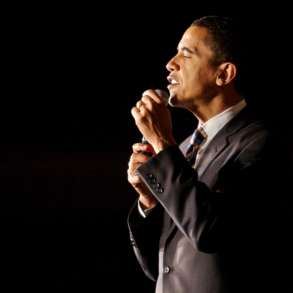 Sen. Barack Obama, D-Ill., addresses a crowd of 20,000 supporters in the Edward Jones Dome in St. Louis on Feb. 2, 2008.